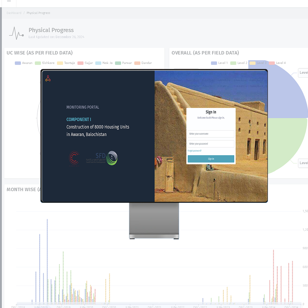 A comprehensive monitoring portal was developed to oversee the construction of 8,000 housing units in Awaran, Balochistan, following the 2013 earthquake. Built with Spring Boot, this portal ensures efficient tracking of housing development progress, financial distributions, and beneficiary management.