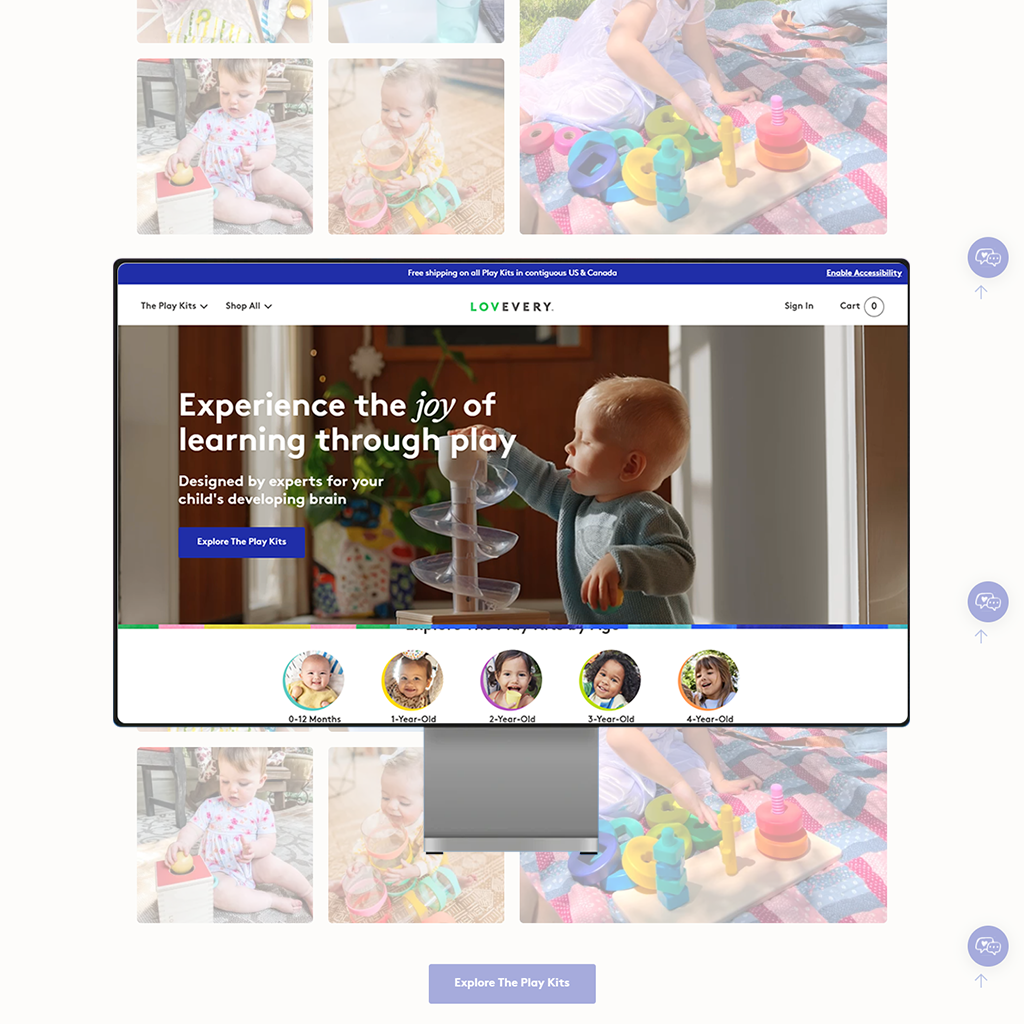 Lovevery required a comprehensive child education platform designed for children aged 0-36 months. The objective was to create a play-to-learn educational website and app that provides parents with stage-based activities, expert parenting insights, and interactive toys to enhance child development. The platform integrates CMS-based learning content, ensuring parents receive structured developmental guidance, along with interactive digital play guides and milestone tracking.