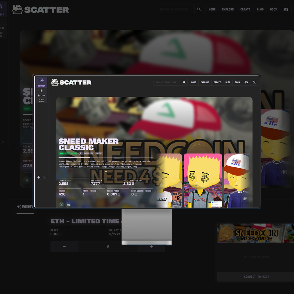 Scatter.art is a decentralized NFT minting platform that allows users to create, mint, and trade NFTs directly on the Ethereum blockchain. By integrating Uniswap V3 for seamless token swapping and utilizing Web3.js, the platform ensures smooth interaction between smart contracts and the dApp interface.
