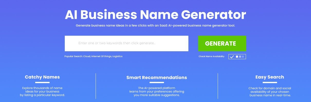 Al Business Name Generator is an Al-based branding tool that generates precise, unique, and complementing business domain names for newly established organizations.