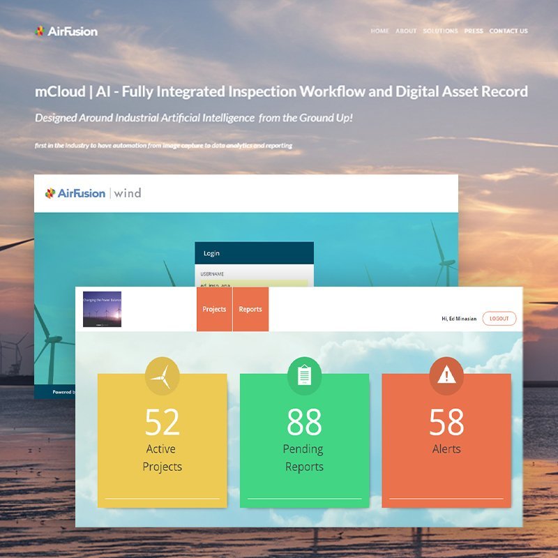 Air Fusion is an Al-based SaaS turbine management system that uses Vision Al to collect and then analyze data to detect the faults in wind turbines.